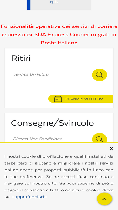 Per chi invia - SDA I nostri cookie di profilazione e quelli installati da terze parti ci aiutano a migliorare i nostri servizi online anche per proporti pubblicità in linea con le tue preferenze. Se ne accetti l'uso continua a navigare sul nostro sito. Se vuoi saperne di più o negare il consenso a tutti o ad alcuni cookie clicca su: «approfondisci»