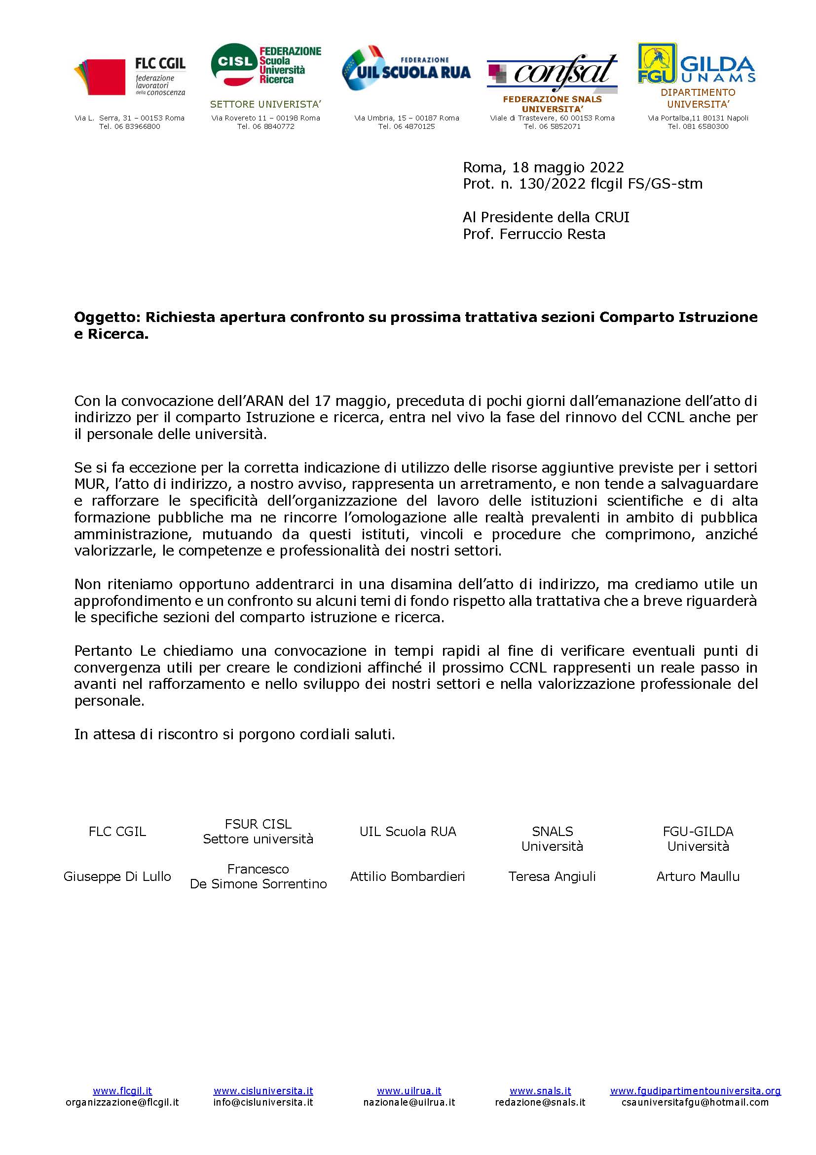 Lettera richiesta incontro sindacale